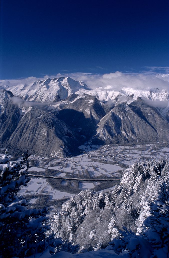 Le massif du Taillefer en arrière plan de la plaine de Bourg d'Oisans (Denis Fiat - PNE)