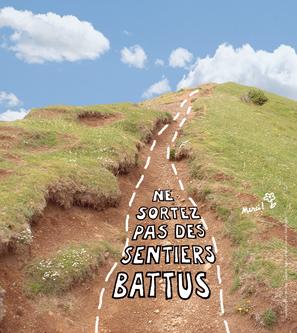 - Empruntez les sentiers balisés, ne vous en écartez pas et ne coupez pas les virages, même si cela est parfois tentant ! A cette altitude, les sols se régènèrent très lentement : tassés par votre passage, ils s'érodent petit à petit (phénomène amplifié lorsqu'il pleut). Les animaux sauvages et les troupeaux peuvent être dérangés par votre présence. Les nombreuses plantes rares risqueraient quant à elles d'être écrasées.