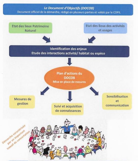 La gestion d'un site Natura 2000 repose sur un plan de gestion, appelé Document d'objectif ou DOCOB. Il est à la fois un document de diagnostic et un document d'orientation pour la gestion du site.