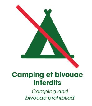 Bivouac toléré exlusivement et uniquement dans les zones de bivouac réservées à cet effet